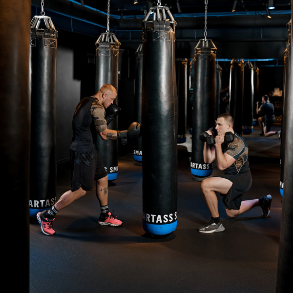 You’ve got a special challenge from your trainer — and a chance to level up your Black Friday discount with some extra %. But don't worry, you won’t need to go on a wild goose chase for it — just stay alert! Stick until the end of the workout, and you’ll be rewarded with a delicious surprise. Active functional class for all levels. You start with a punching bag. Your trainer shows simple combos, i.e., your cardio workout. After that, you do strength and cutting workouts on the floor. You’ll alternate these blocks. Thanks to this structure, your muscles will wake up faster but tire more slowly. You’ll do arms, shoulders, abs, back, and legs exercises.