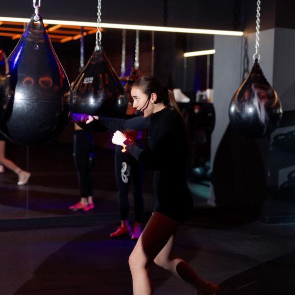- Training duration — 45 minutes - You’ll need sneakers for the workout. Active functional class for all levels. You start with a punching bag. Your trainer shows simple combos, i.e., your cardio workout. After that, you do strength and cutting workouts on the floor. You’ll alternate these blocks. Thanks to this structure, your muscles will wake up faster but tire more slowly. You’ll do arms, shoulders, abs, back, and legs exercises.