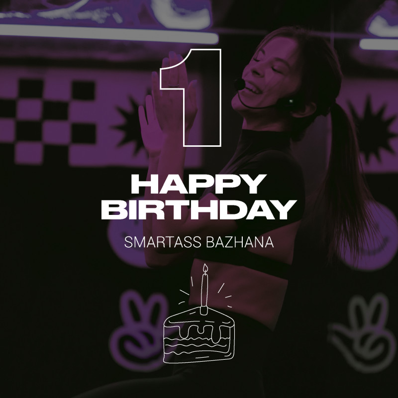 Smartass Bazhana turns one — and this week’s schedule is a little extra special. Stay after class for a glass of bubbles and grab a gift (our brand-new sticker pack).